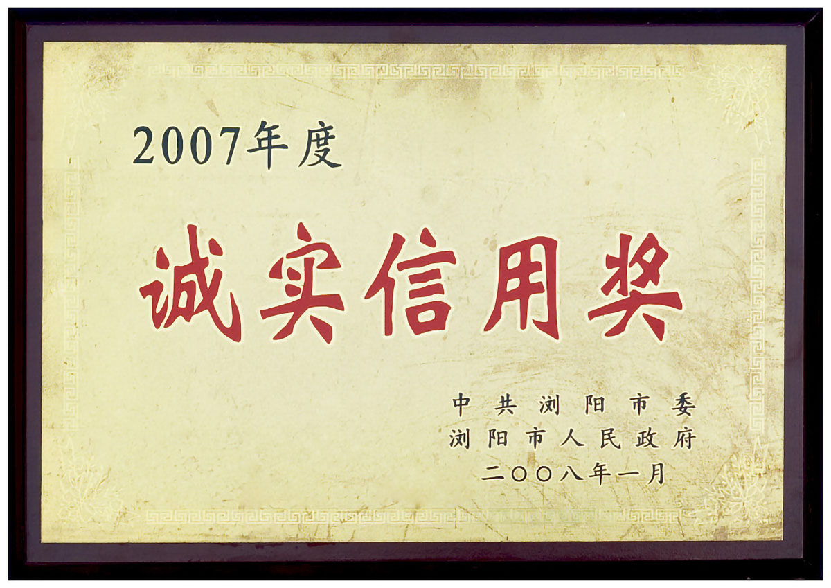 2007年被浏阳市委评为诚实信用企业